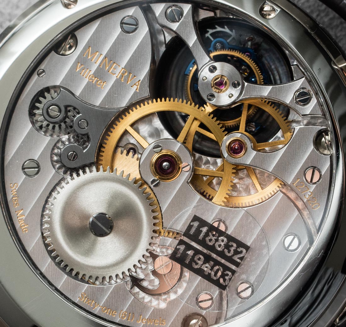 Star Legacy Metamorphosis Limited Edition 8 内部的机芯是万宝龙制造的 MB M67.60 机芯。这款手动上链机芯在维莱尔的万宝龙 Minvera 生产,工作频率为 2.5 赫兹(18,800 次/小时),动力储存约 50 小时。变形系统通过滑动表壳侧面水平的动作提供动力,因此根本不会影响主发条的动力。正如我上面所说,机芯由 718 个手工完成的零件组成,通过表壳后部可以额外看到机芯。