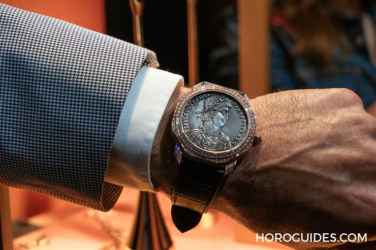 千年古币本就稀少,可以说是做一个少一个,而宝格丽也在怀表玫瑰金外壳特别镶饰上钻石,在视觉上更华丽,由于保存良好的千年古币相当稀有,因此能够做成腕表实属难得,除此之外,这只怀表也可变换成为腕表戴上手,让这只古币表更独特。